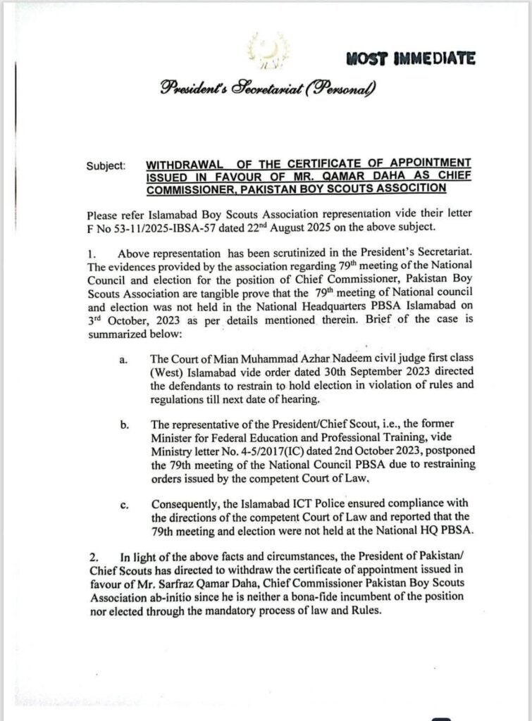 پاکستان بوائے اسکاؤٹس ایسوسی ایشن سے وابستہ افسر سرفراز قمر ڈاہا پر بڑے پیمانے پر اختیارات کے ناجائز استعمال اور مالی بدعنوانی کے الزامات سامنے آ گئے ہیں۔