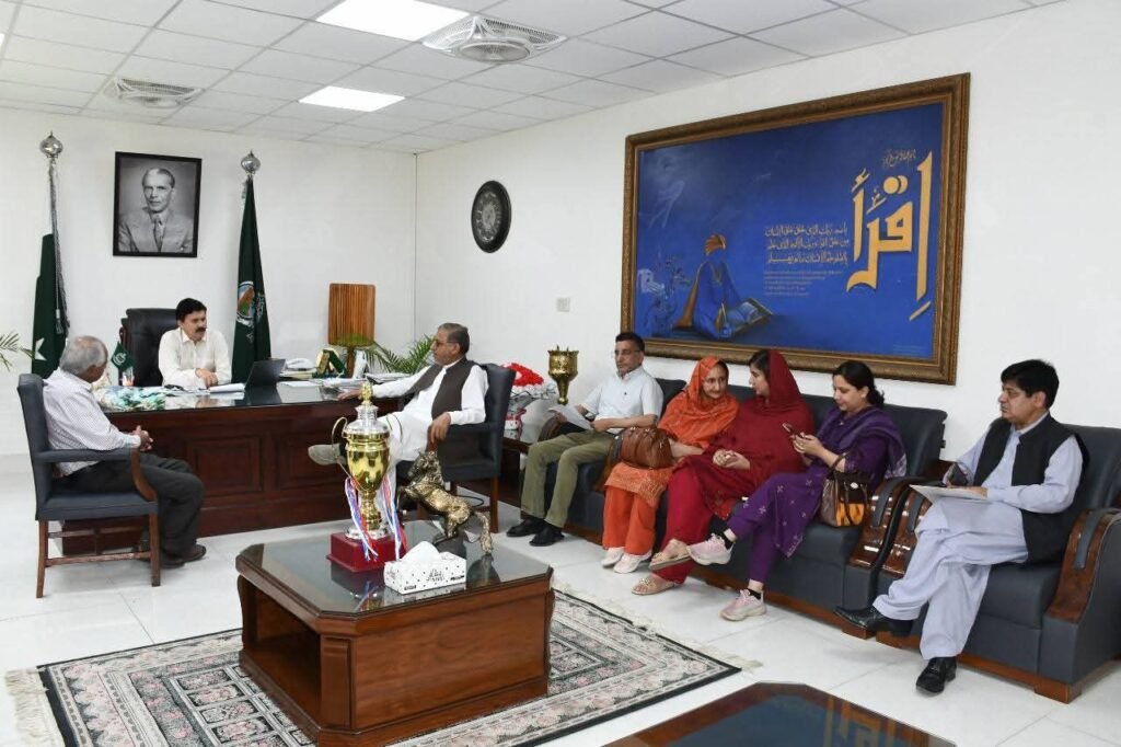 ترقی پذیر ممالک میں پانی کی قلت، سیلاب، خشک سالی اور ماحولیاتی تبدیلی سمیت زرعی شعبے میں درپیش چیلنجز سےنمٹنے کے قائم بین الاقوامی ادارے انٹرنیشنل واٹر مینجمنٹ انسٹیٹیوٹ (IWMI)کے وفد نے وائس چانسلر ہزارہ یونیورسٹی مانسہرہ پروفیسر ڈاکٹر اکرام اللہ خان سے ملاقات کی۔وفد کے سربراہIWMIکے کنٹری ڈائریکٹر ڈاکٹرمحمد اشرف نے وائس چانسلر سے یونیورسٹی میں جاری واٹر ریسورس اکاؤنٹیبلٹی پاکستان WRAPمنصوبے پر تبادلہ خیال کیا اور اس پر ہونے والی پیشرفت کا جائزہ لیا۔
